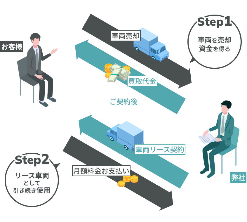 売却した車両を対象にリース契約を結ぶことで、